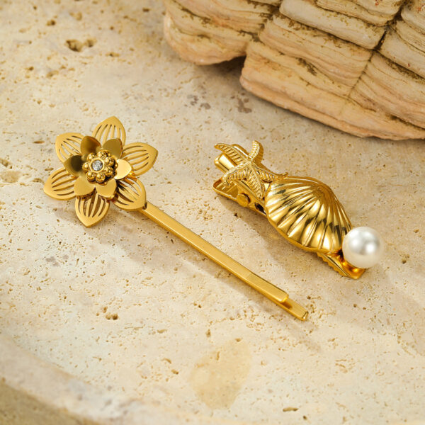 Stainless Steel Hair Clips Flower for Women Luxury Pvd Gold Plated