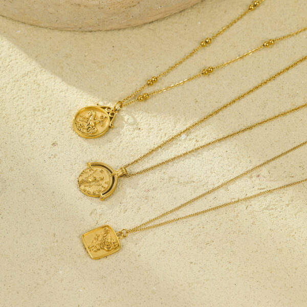 Roman Coin Charm Necklace Stainless Steel 18K Gold