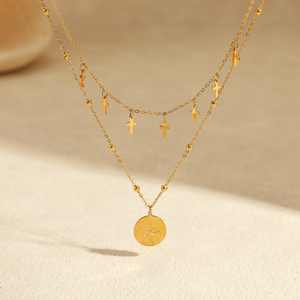 Crafted from premium 18K stainless steel, this double-layer necklace combines modern minimalism with timeless elegance. Available in gold and steel silver, it offers lasting shine and durability without fading. Hypoallergenic and comfortable for daily wear, it’s the perfect piece to elevate any look or gift to someone special.