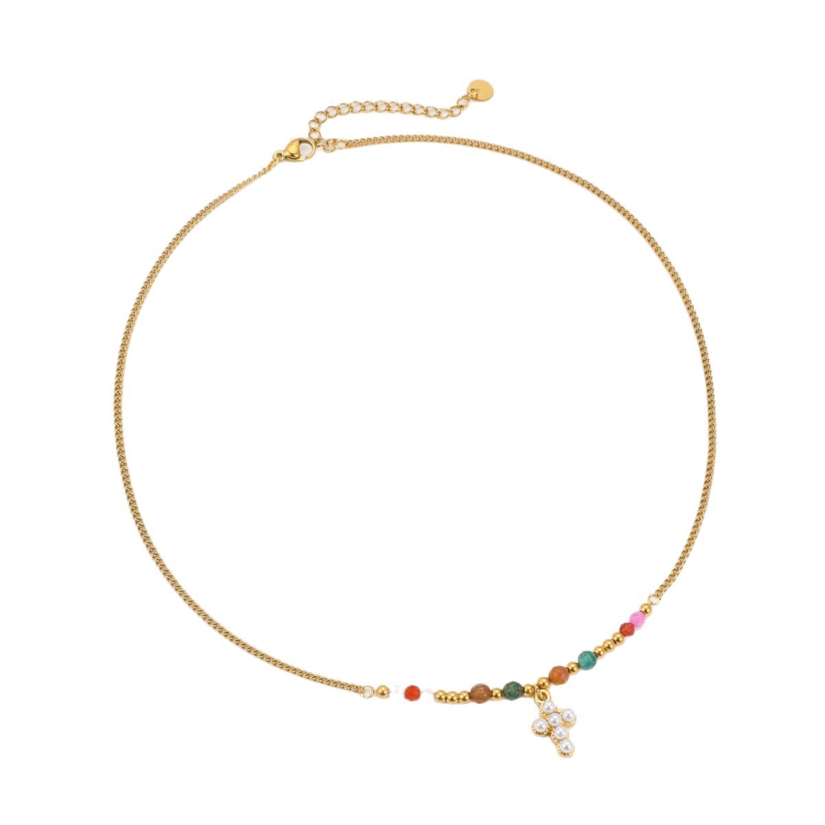 Necklace Silver Stainless Steel Multicolor Gemstone Charm Necklace