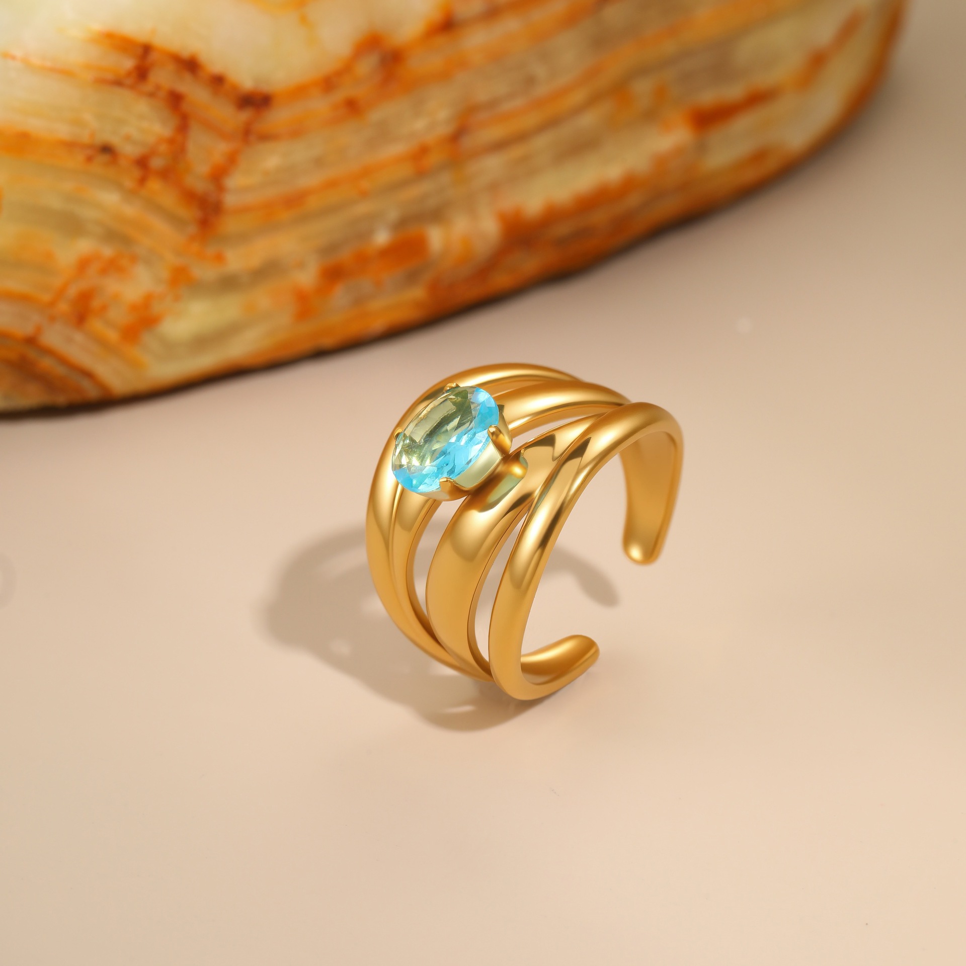 Stylish and unique, this hollow irregular ring features a brilliant blue zircon centerpiece that catches the light beautifully. Crafted from high-quality stainless steel, it offers lasting shine, durability, and a modern artistic touch — perfect for adding elegance to any look.