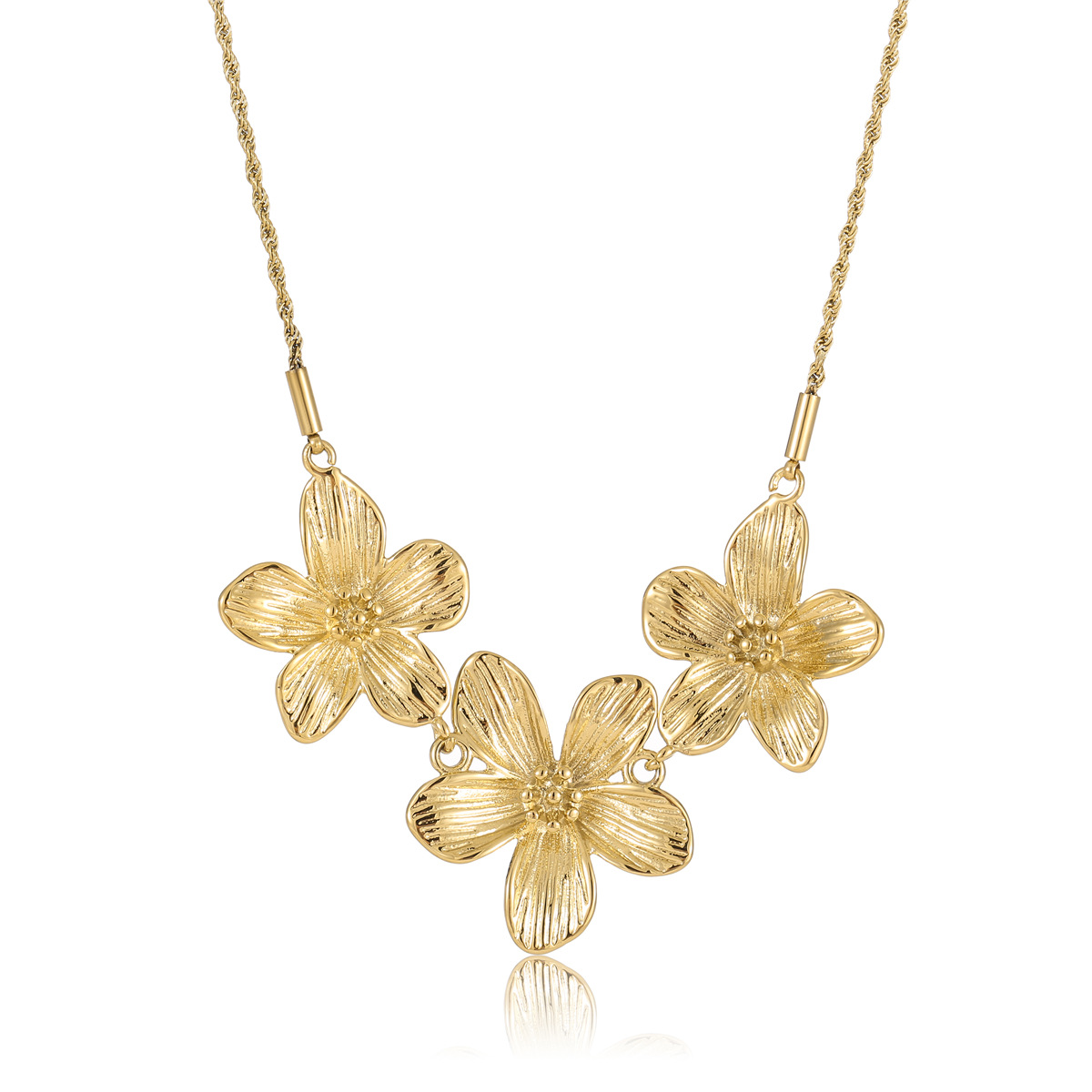 Flowers Necklace 18K Gold Plated Stainless Steel 3 Flower Pendant Necklace for Women