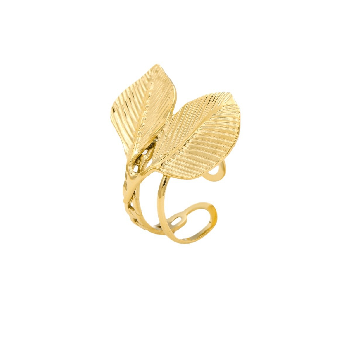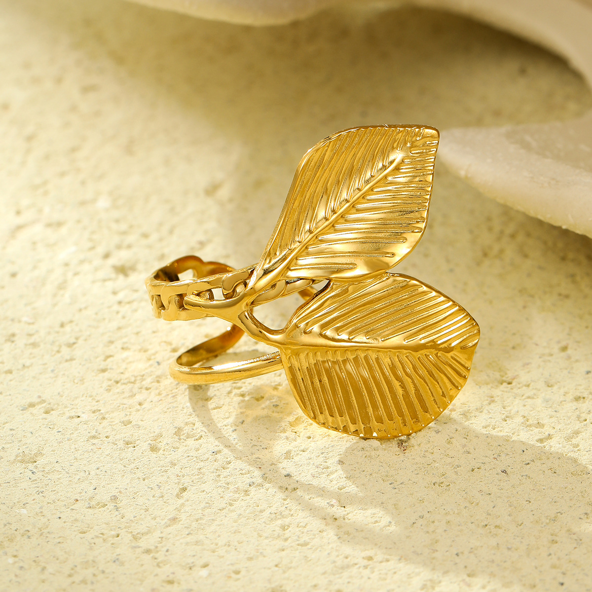 Leaf Ring Stainless Steel Gold-Plated 18K for Daily Wear Jewelry