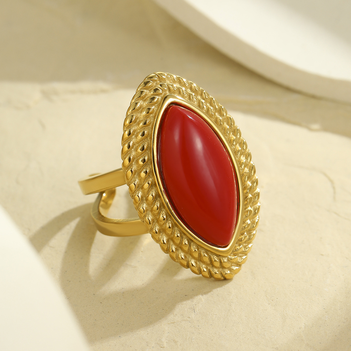 Elegant and distinctive, this agate marquise-shaped open ring is crafted from high-quality stainless steel for lasting shine and durability. The adjustable design ensures a comfortable fit, while the natural agate stone adds a touch of sophistication and charm to any look.