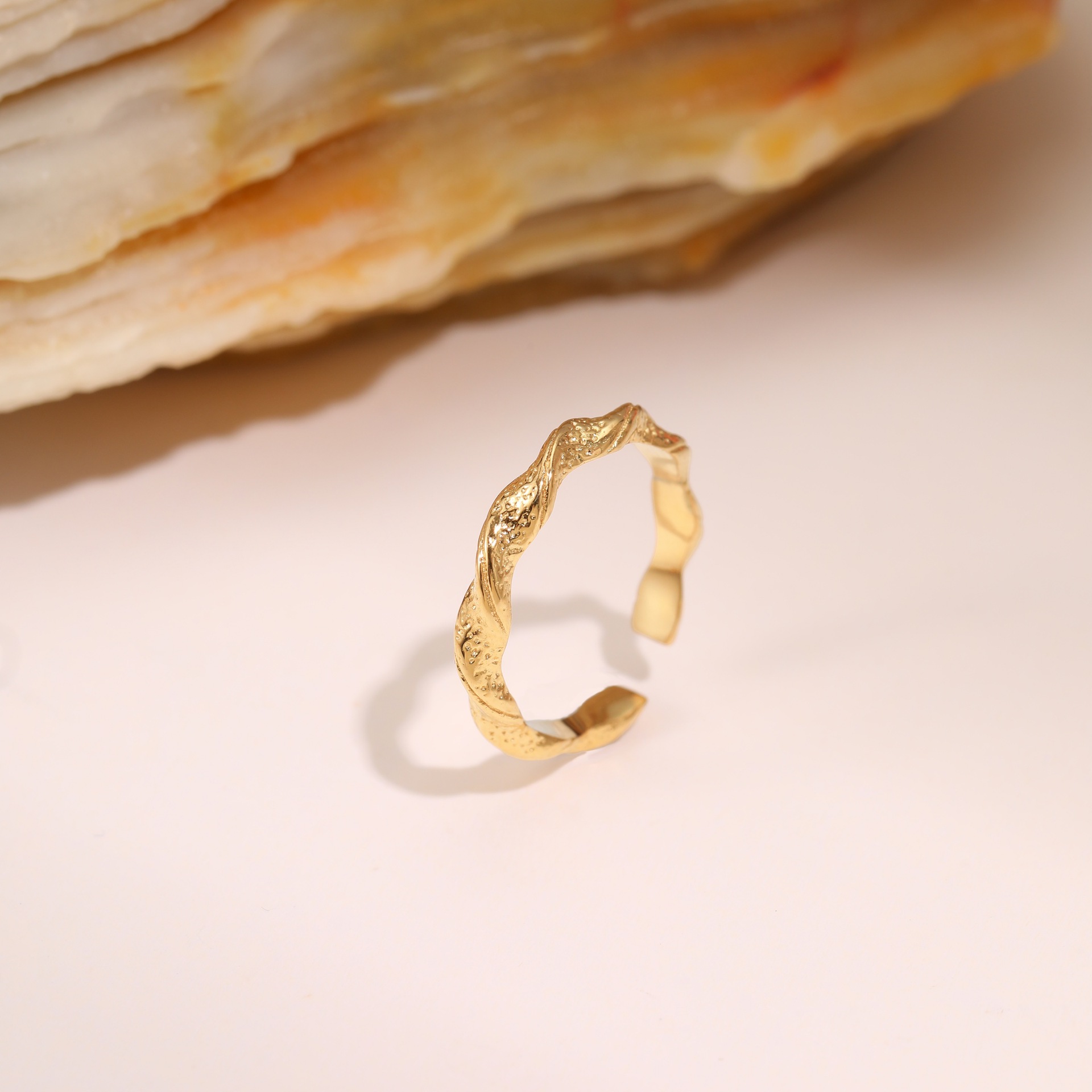 Chic and artistic, this geometric hammered open ring is crafted from premium stainless steel for durability and long-lasting shine. Its textured finish and minimalist design create a unique, refined look — perfect for expressing effortless modern style.